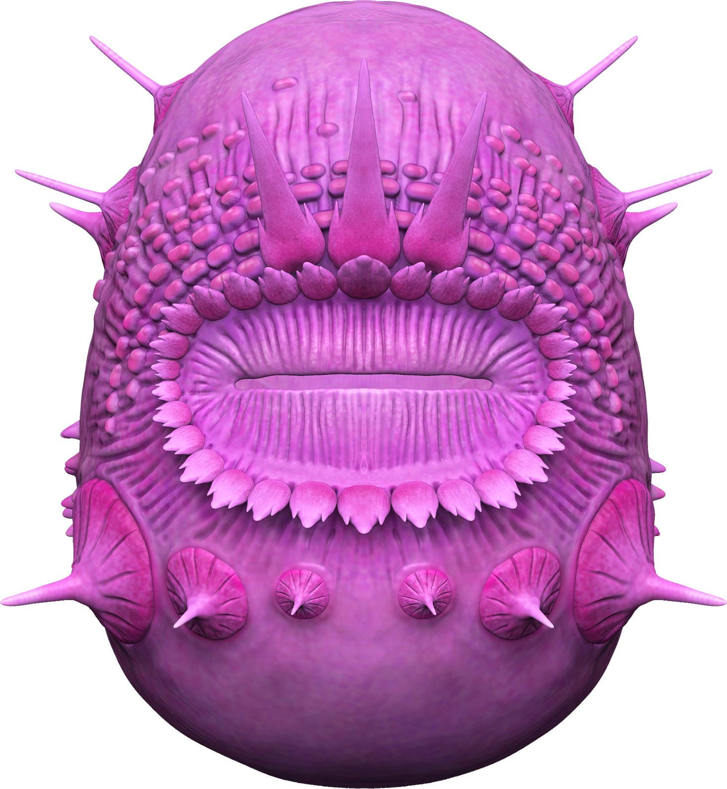 Saccorhytus嘴巴周围的毛孔被另一个身体层延伸过去而封闭,在嘴巴周围形成了刺。研究人员认为,