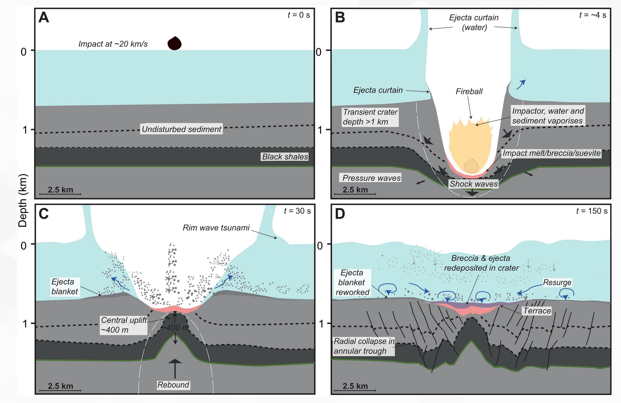 根据这项研究,海啸的威力足以产生约1600多米高的巨浪,冲刷距离小行星撞击地数百万公里的海底。它有效地“抹去”了海啸产生之前及期间该地区所发生事件的沉积记录。