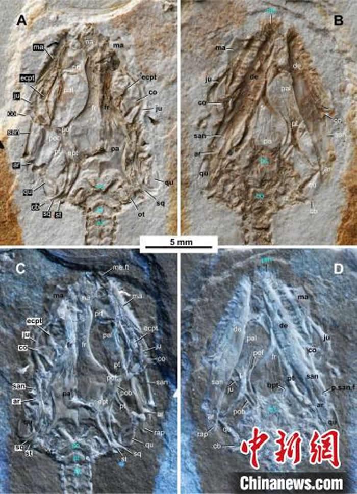 美丽莫旗蜥正型标本头骨。中科院古脊椎所 供图