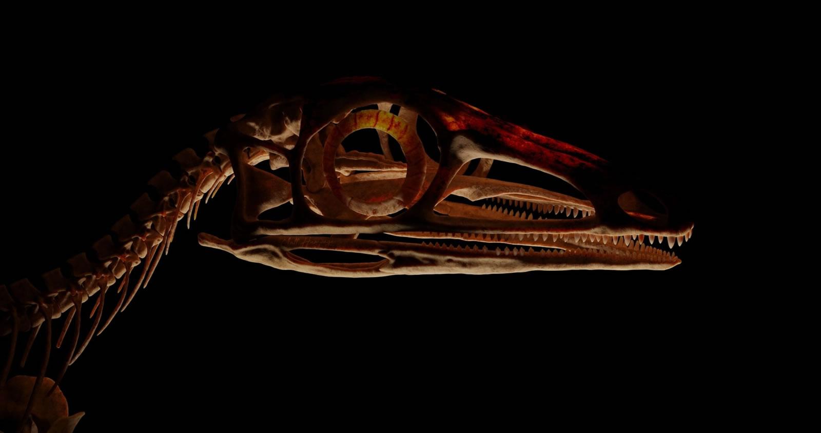 为了研究这些爬行动物和它们神奇的解剖结构,Foffa和他的同事们打算用x射线对它们进行高分辨率扫描,将许多2D图像叠加在一起,以3D重建化石的轮廓。在成功扫描了埃尔金爬行动物(发现于苏格兰埃尔金镇的二叠纪与三叠纪动物群)弱肋蜥(Leptopleuron)之后,Foffa将目光转向了传说中的斯克列罗龙。