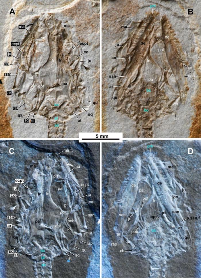 Moqisaurus pulchrum gen. et sp. nov.)。莫旗蜥以高度相嵌的额顶缝、额骨和顶骨成对,下颌不具有隅骨突以及较短的四肢区别于其他晚侏罗世和早白垩世的有鳞类属种。莫旗蜥与热河生物群中的柳树蜥(Liushusaurus)最相似,但莫旗蜥的额顶缝更复杂,顶骨成对,后额骨为长方形,而柳树蜥的顶骨单一,后额骨成三角形。