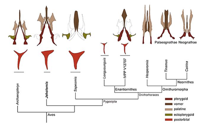 包含热河鸟的鸟类腭区及眶后骨对比图(胡晗供图)