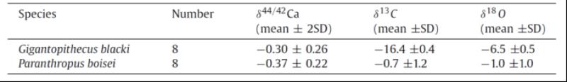 表1 巨猿和傍人鲍氏种的稳定同位素比较