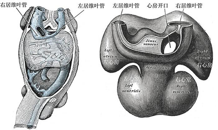 图8 包括我们人类在内左右两侧的居维叶管并不对称,右边要比左边大的多(引自 Wikipedia, the free encyclopedia)