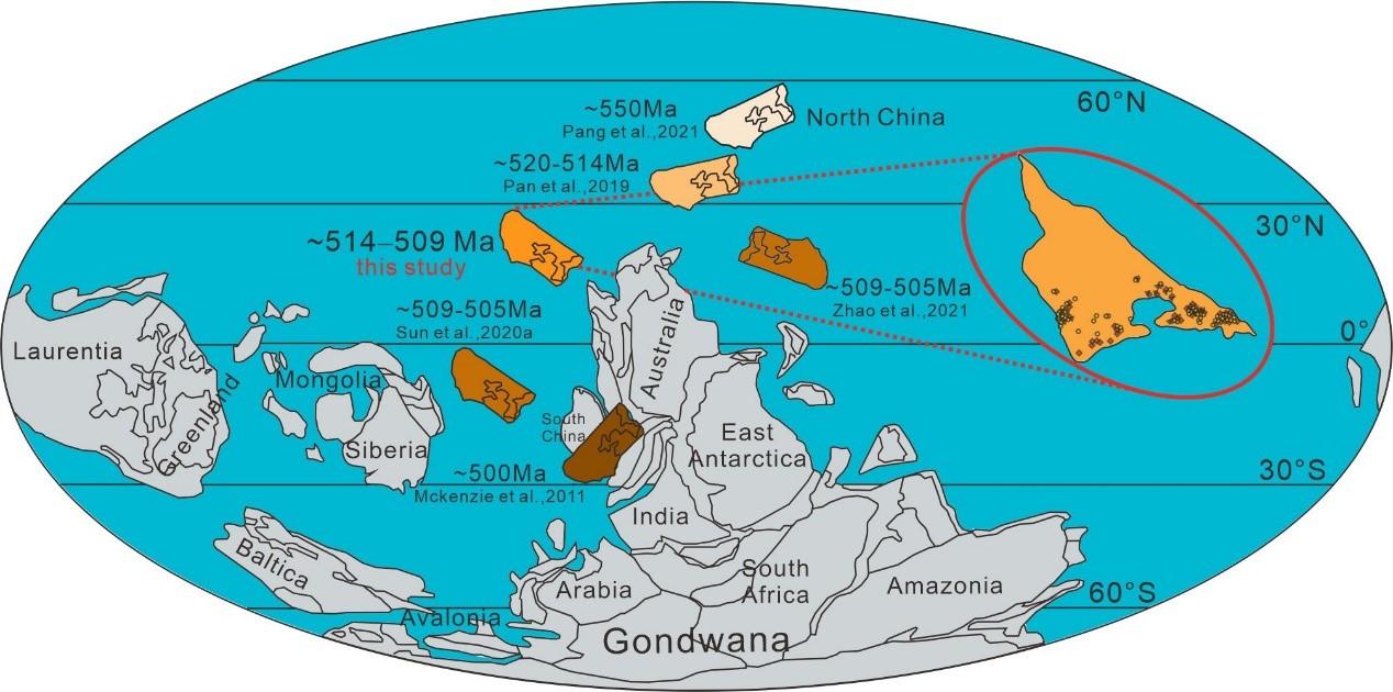 华北板块早寒武世古地理位置恢复(514-509 Ma)