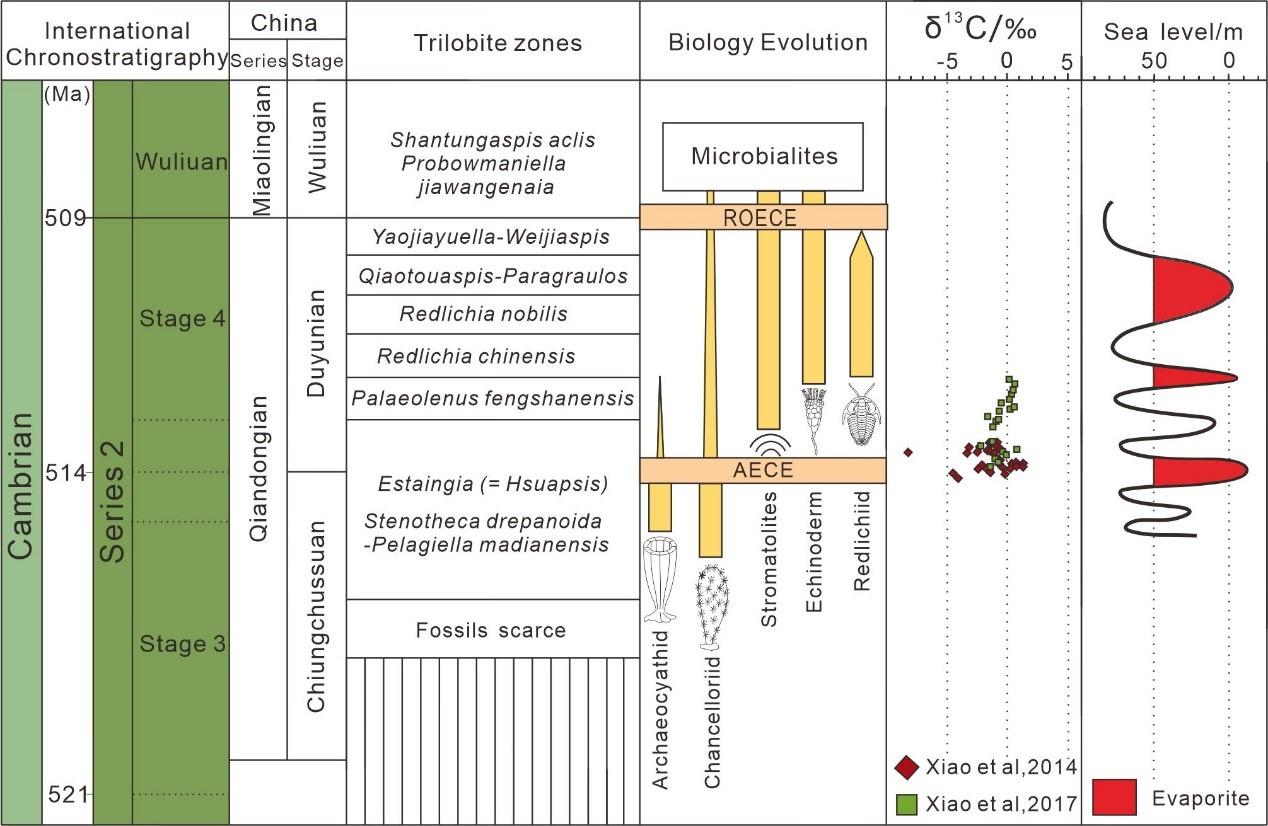 寒武纪早期是后生动物起源和演化的关键时期,发生过两次生物灭绝事件,分别是古杯动物大灭绝事件(AECE)以及莱德利基虫类和小油栉虫类大灭绝事件(ROECE)。本次研究发现,华北板块寒武纪早期膏盐沉积和这两次大灭绝事件在时空关系上具有较高的耦合性,进而推测膏盐沉积所代表的多期海退和高温干旱事件,导致了海水盐度的增加和底栖动物栖息地的丧失,可能是造成以古杯动物和莱德利基虫等为代表的底栖生物灭绝的重要环境因素。