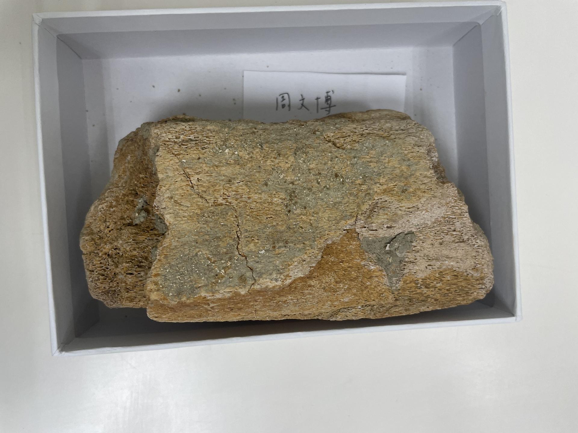 带来鲸奇发现的第一块鲸鱼肋骨碎片,左侧明显可见海绵状组织。摄影:钟慧元