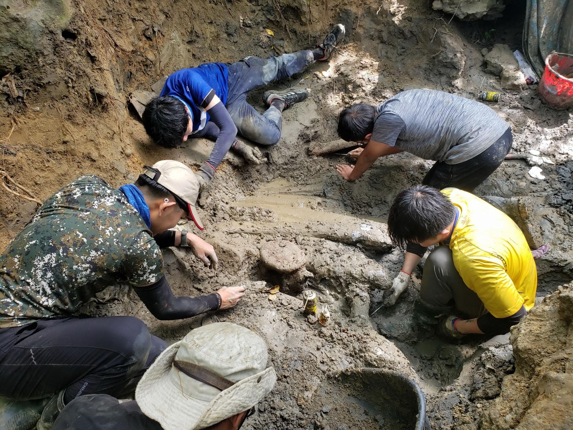 吴筱柔说,有一次大家挖得很认真,没发现水位慢慢上涨,等注意到的时候,水已经淹过膝盖了,只好赶快放下工作撤退。「当时还蛮害怕的,但也突然可以理解那里为什么会叫做沟。」成大地科系的陈宗岱说,「但其实雨水本来就会把沉积物冲刷掉,地层里其他的物质就会很容易被往下游带。」有些化石也是因为冲刷被带出地表,才有机会被人类发现。