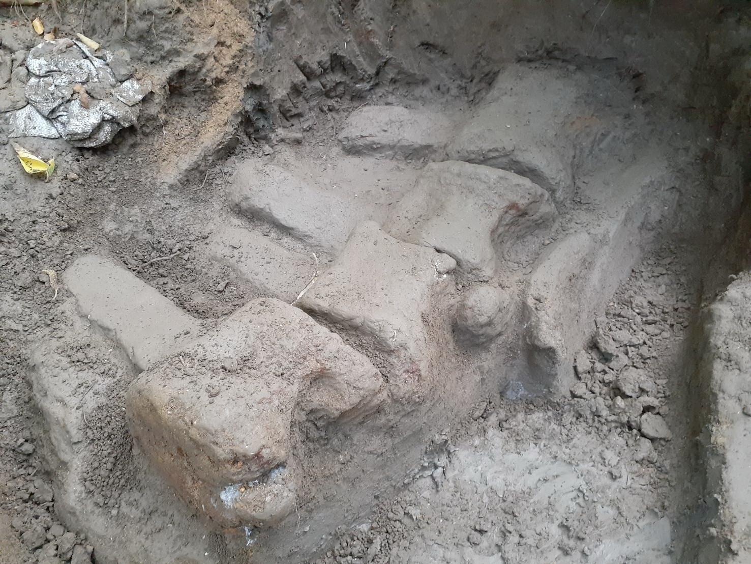 鲸鱼的尾部骨骼化石仍排列得相当整齐,从脊椎骨前后的生长板愈合的程度,就能判断鲸鱼是成熟个体或幼年个体。但还要等清修过后,才能知道生长板的状态。图片提供:国立自然科学博物馆