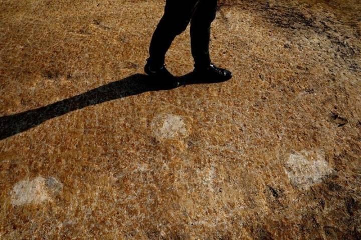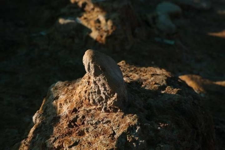令人惊喜的是,在发掘区南部上文化层中,还相继出现了两排3组脚印遗迹。其中在南排,考古人员清理出26枚古人类脚印。这些脚印的尺寸与现代人脚相当,大部分步幅在80厘米左右,年代要晚于石构遗迹。而北排的7枚印迹,考古人员判断可能是大型哺乳动物遗留。专家认为,旧石器时代的人类脚印能完好保存至今,极其罕见,对研究人类行为具有重大意义。