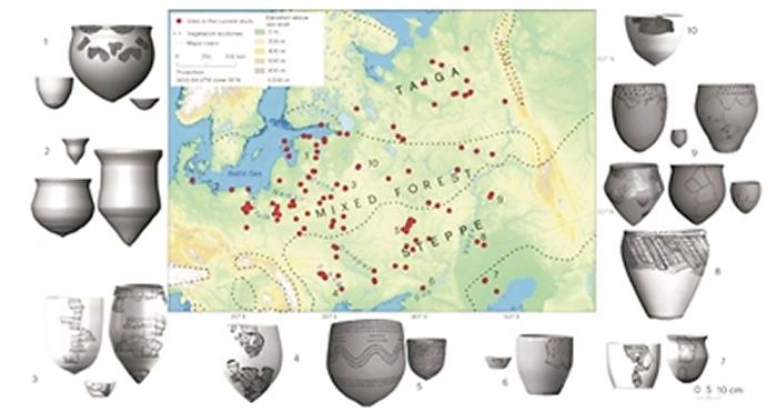 爱尔兰梅努斯大学团队此次分析了1226个陶器的残片,这些陶器来自遍布在东欧和俄罗斯的156个狩猎采集者遗址。他们的研究结合了放射性碳测年、陶器形状和装饰的数据,以及对陶器内部有机残留物的分析结果。结果表明,陶器的使用在公元前5900年之后相对较快地向西传播,只用了300—400年就传了3000公里(相当于一代人里最远传了250公里)。他们对陶器形状和装饰的分析表明,这个传播过程是一种文化的传播,这些陶器的特性与它们使用方式之间的关系可能反映了狩猎采集者后代继承的社会传统。