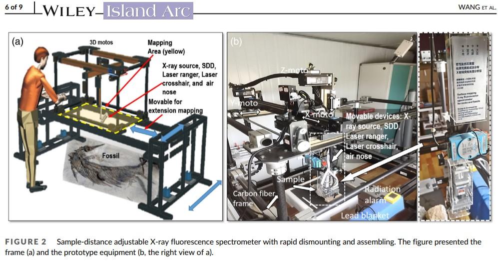 常见的表面化学元素分布测量仪器,如电子显微镜及能谱,只能分析毫米级以下尺寸样品。仅有的用来分析大型化石表面化学元素分布的仪器设备,则需要将化石打磨或切割成一个平面并放入真空系统中才能进行准确分析。因为分析条件需要保持固定的样品和X射线光源及检测器之间的距离,样品表面光洁,并排除周围的氧气和氮气。因此这种对样品的破坏性预处理,不能满足我们对珍稀化石标本进行无损研究的需要。