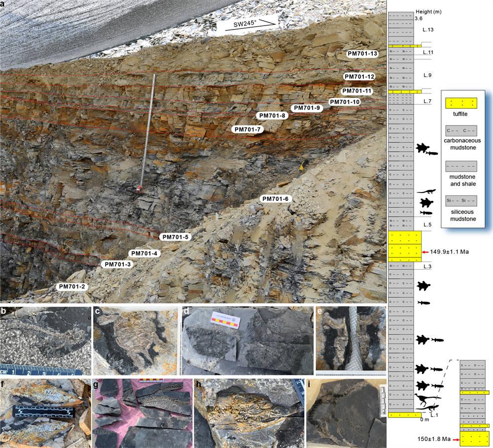 9月6日,《自然》(Nature)发表了中国科学院古脊椎动物与古人类研究所(以下称“古脊椎所”)王敏团队和福建省地质调查调查研究院(以下称“福建地调院”)合作完成的有关福建省内中生代地层和古脊椎动物的研究成果(图1),报道了世界上侏罗纪最晚期和地理位置最南的鸟翼类恐龙,以及大量其它脊椎动物,并结合年代地层和生物地层等工作,建立距今1.48–1.5亿年前的陆相生物群“政和动物群”。 古脊椎所王敏为通讯作者和共同第一作者,福建地调院徐立明为第一作者。