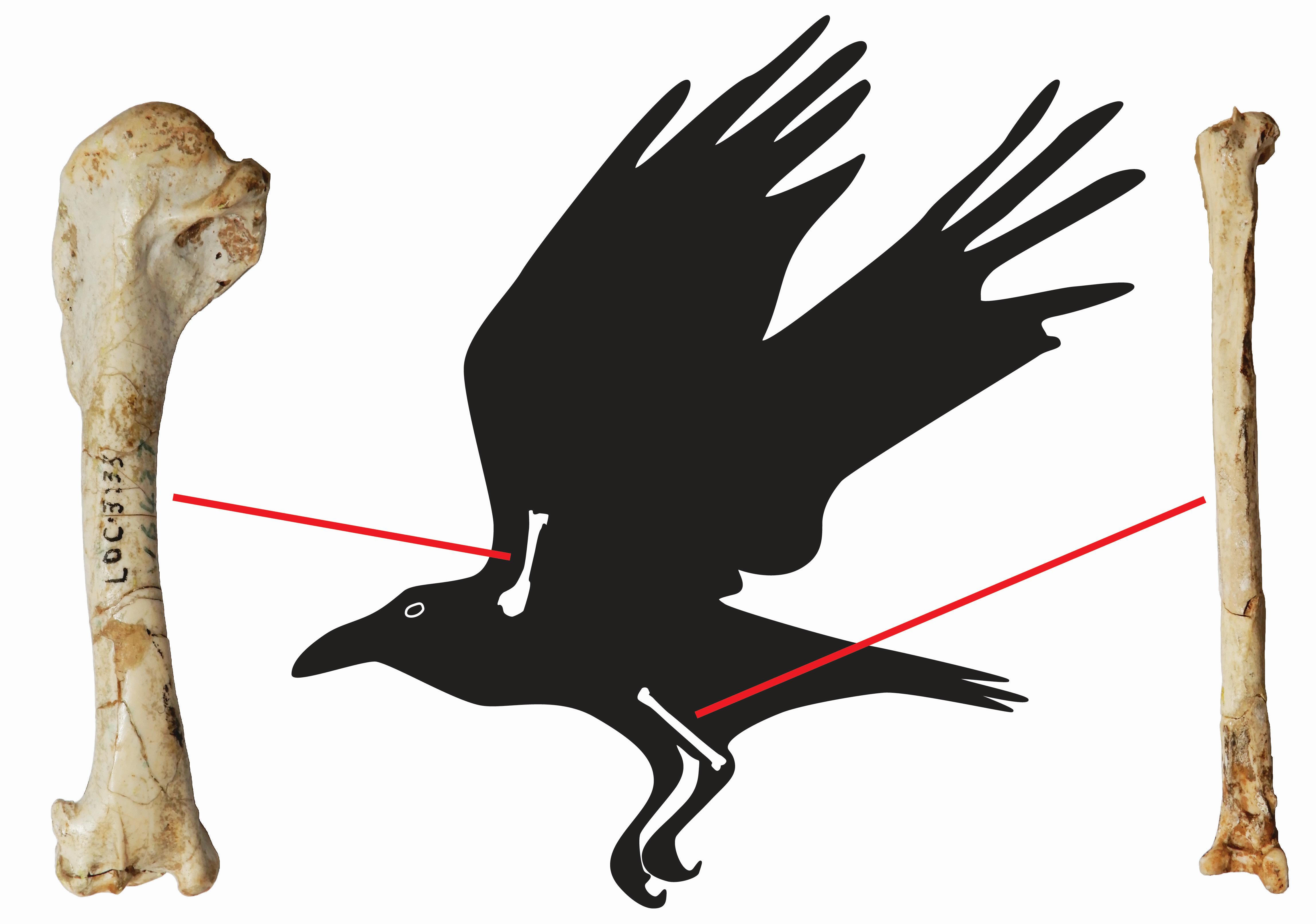 周口店龙骨山3号洞穴发现的渡鸦肱骨和胫跗骨化石(Stidham 供图)