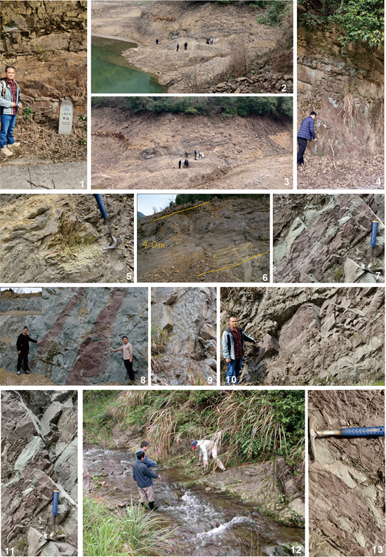 ↑图2 浙江中部志留系兰多维列统唐家坞组的野外露头
