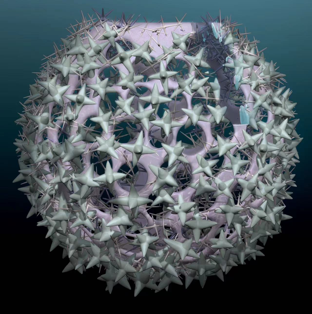 ↑多孔膨胀海绵(Turgidaspongia porosa gen. et sp. nov)复原图(杨定华绘制)