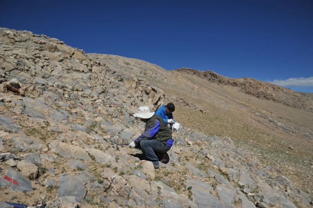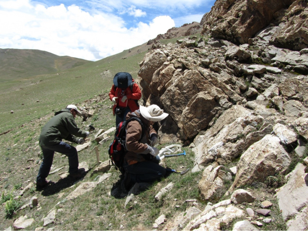 ↑ 图4. 中科院南古所张以春等2016年7月在措勤县阿多嘎布地区考察