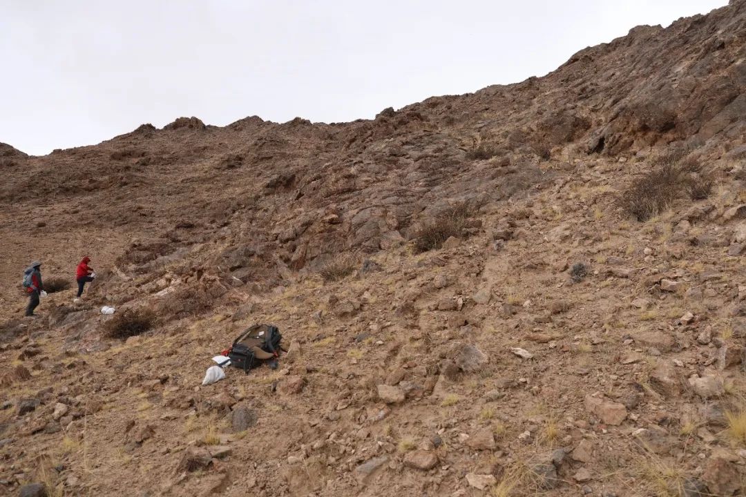 ↑ 图6. 中科院南古所张以春等2018年5月在噶尔县左左乡地区考察