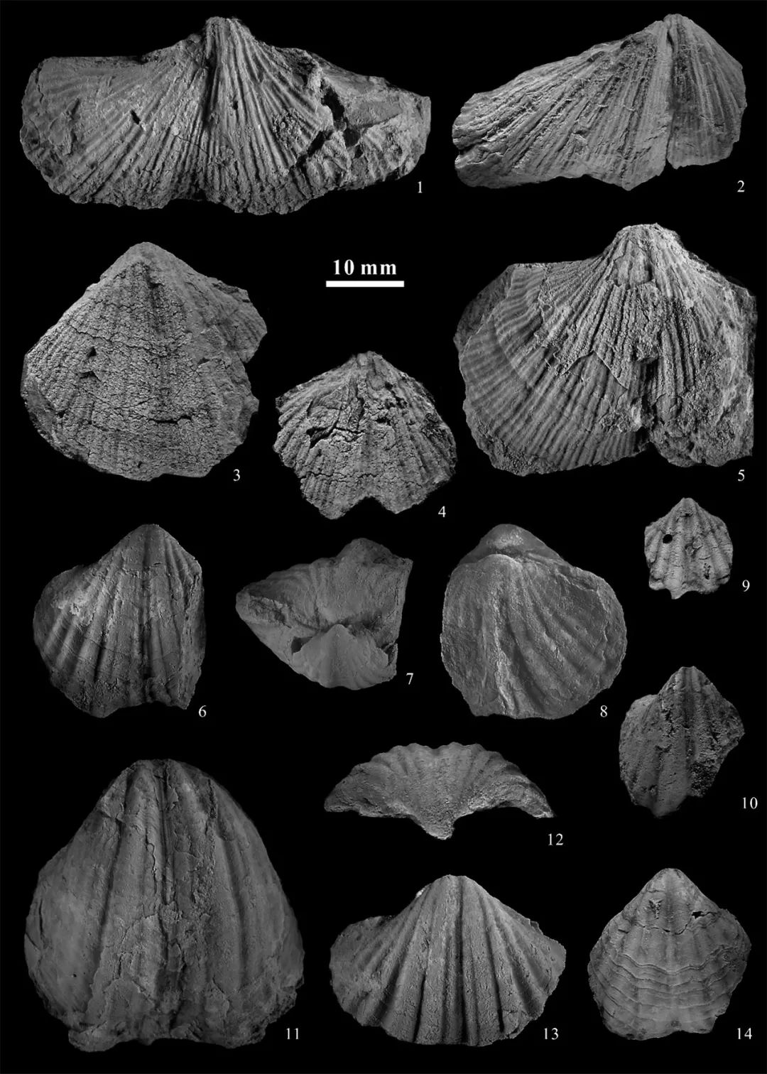 ↑ 图9. 拉萨地块早二叠世晚期的腕足类化石(3-14)