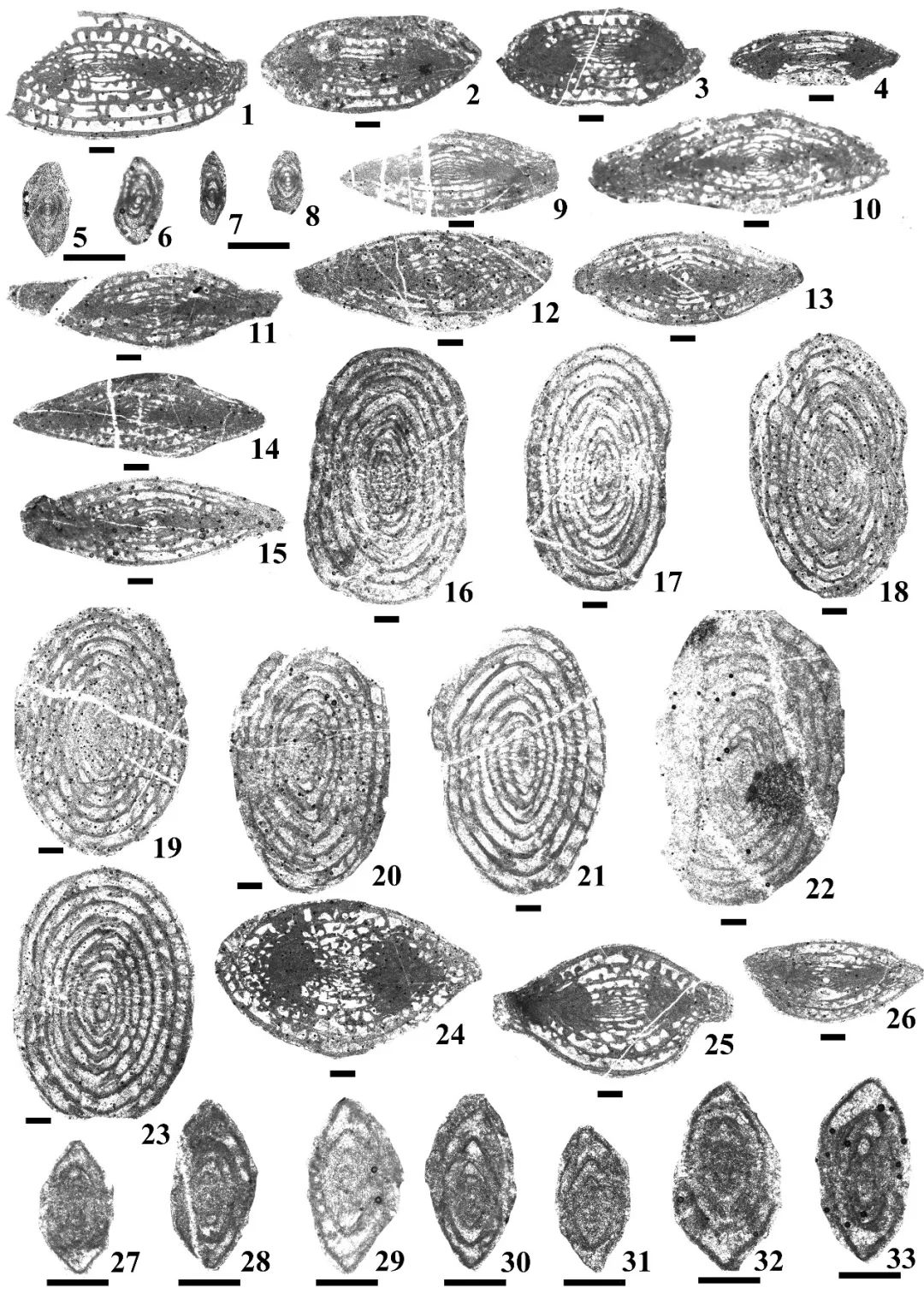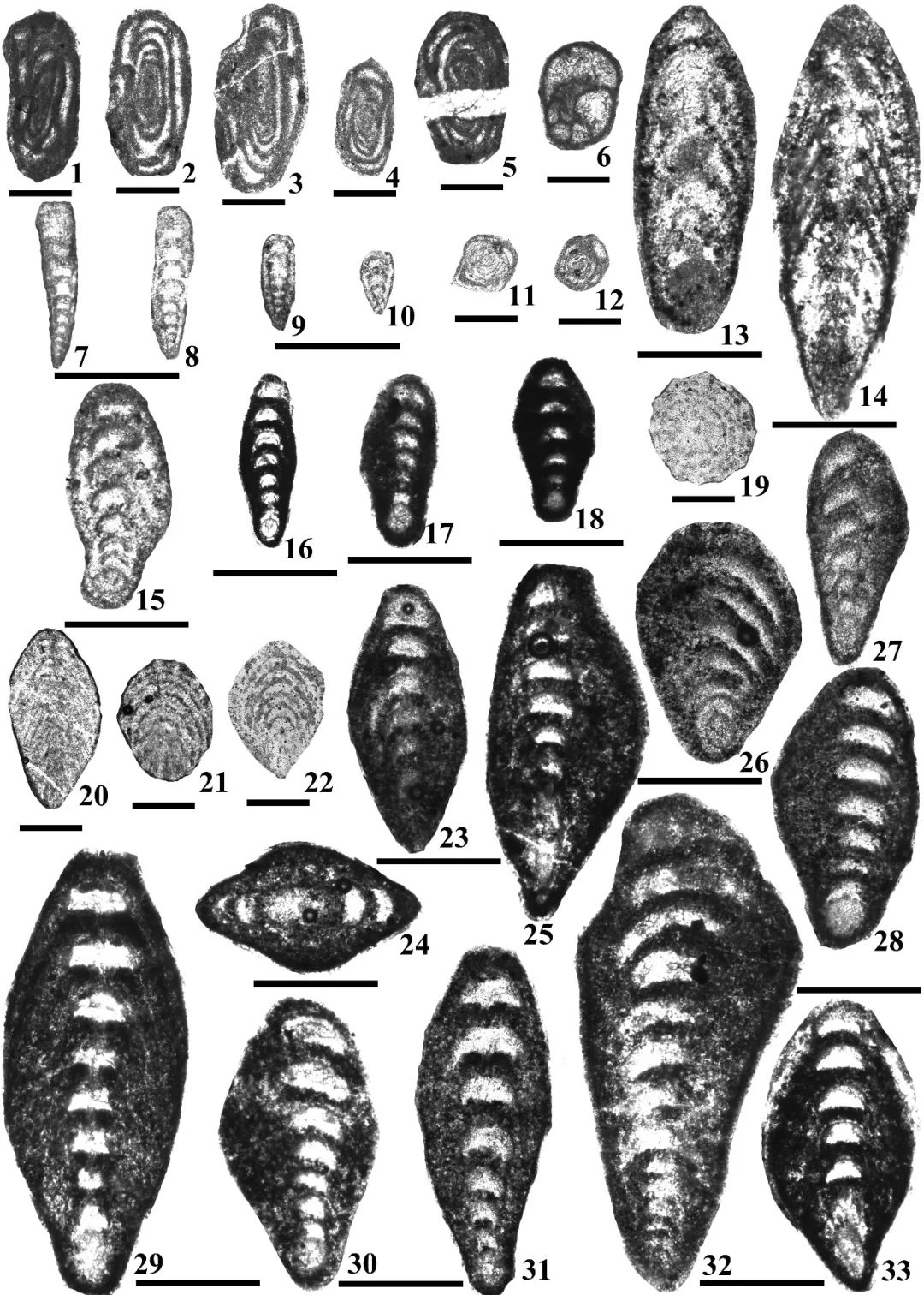 ↑ 图11. 扎布耶地区下拉组中的小有孔虫化石(15-19为Shanita)