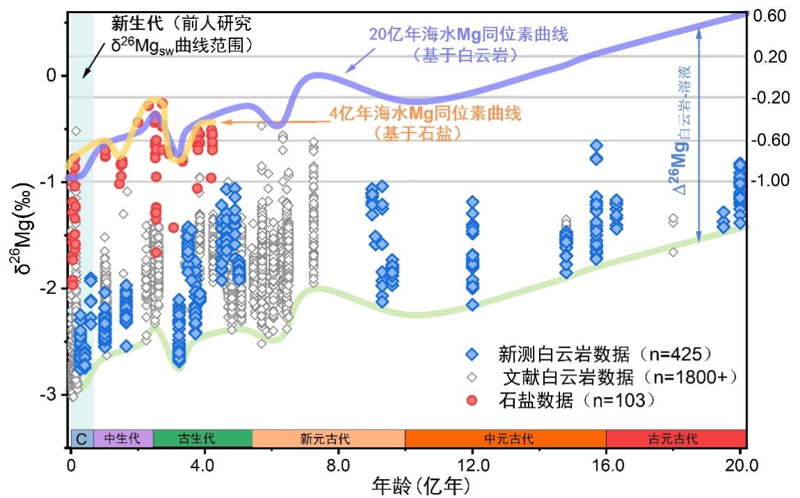 在地质时间尺度上,地球大气CO2含量受到碱金属镁和钙的地表循环调控,因此,地球表层镁循环的长周期演变、驱动和响应机制是关乎地球宜居性的核心科学问题。过去几十年里,研究人员发现海水镁含量在显生宙(最近5亿年)曾发生巨大波动,造成了海洋在“方解石海”和“文石海”之间交替演变,但其机理存在很大争议,有“白云岩化驱动”和“地幔活动驱动”两大假说,至今尚无定论。而在显生宙之前的漫长前寒武纪,地球的镁循环如何演变,如何与地表环境耦合,当今学界知之更少,存在巨大的研究空白。