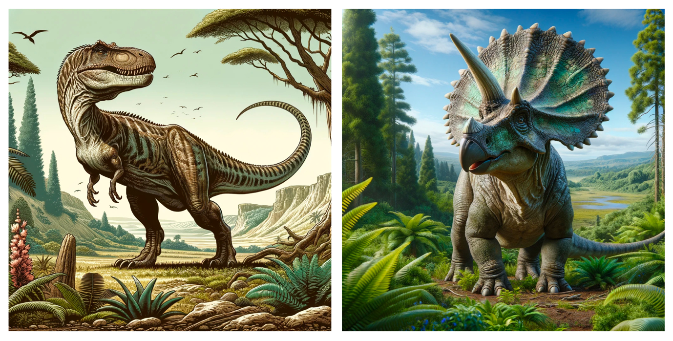↑ 图5. 两例基于生成式人工智能的恐龙复原图