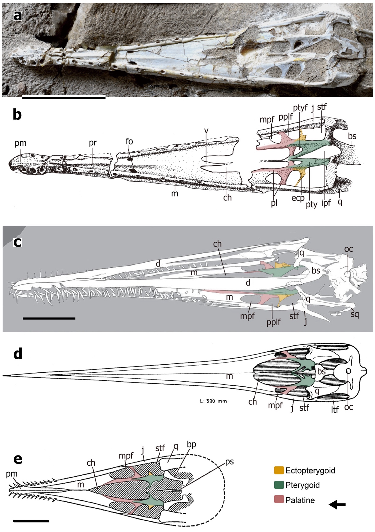 d,准噶尔翼龙(IVPP V 26257);e-i,分别为上颌骨后部、轭骨上颌骨突、腭骨、翼骨