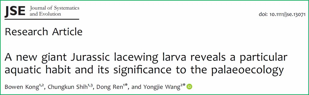 原标题:《广东省科学院动物研究所王永杰与首都师范大学任东研究团队报道侏罗纪巨型脉翅目化石新种幼虫及其独特的水生习性和古生态学意义》(原文有改动)