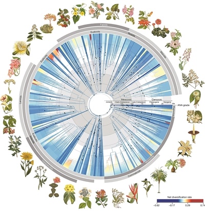 这项研究利用了来自9500多个物种的18亿个遗传密码,覆盖了近8000个已知的开花植物属(约60%),为人类展开了一部植物进化史,并告诉人们,这些植物是如何在地球生态的主导地位上崛起的。