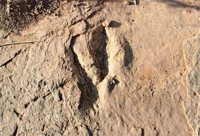 据悉,两种不同的恐爪龙足迹中,较小形态类型的足迹平均长约11厘米;而大型二趾足迹共有6枚,其中5个足迹组成了一道行迹,足迹保存清晰且足趾细长,其大小远超之前发现的山东驰龙足迹的长度(28.5厘米)。