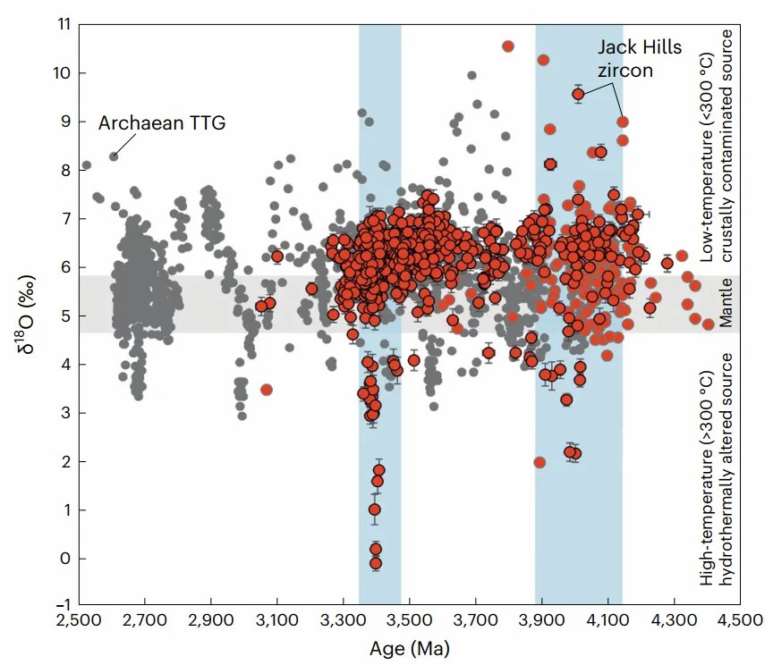 原标题:《Nature Geoscience:又是锆石来解密!地球40亿年前就有了水循环?生命起源更早?》