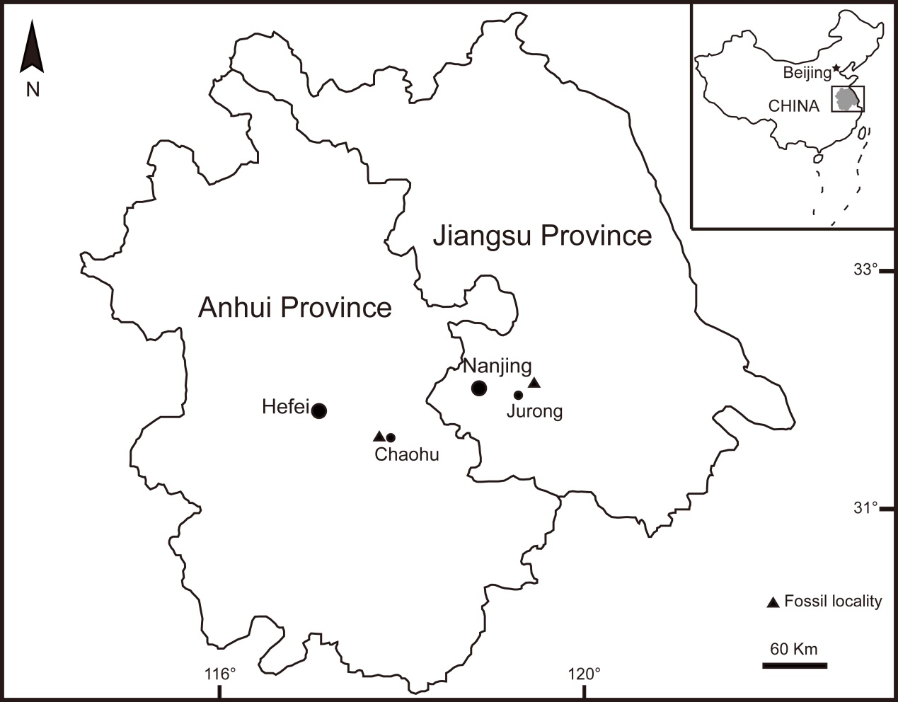 在早三叠世时期,裂齿鱼科以三叠鱼属为典型代表,该属包括两个已知物种:贵州晚第纳尔期的优雅三叠鱼和非洲早史密斯期的马达加斯三叠鱼,它们生活的时代距今约2.5亿年。此次发现的吴氏三叠鱼共有6块标本,其中4块产自于江苏句容青山,2块产自于安徽巢湖马家山,它们都结核的形式保存。在中生代海洋中,灰岩结核包裹着鱼化石是一个有趣而又常见的自然现象。在生物地层上,这些含鱼化石的结核位于史密斯期与斯帕斯界线略下(距今约2.49亿年),代表了三叠鱼属出现的最高层位。