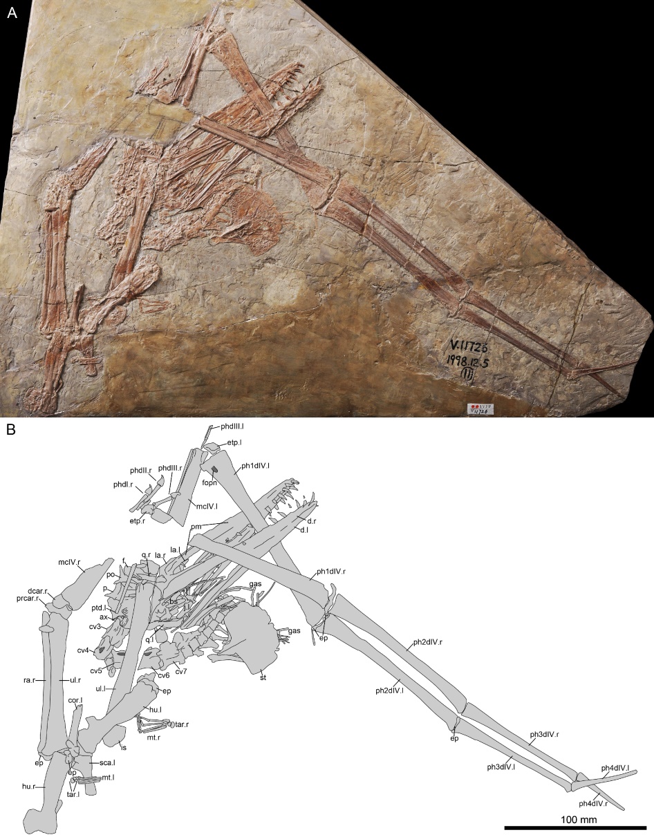 近日,国际学术期刊《白垩纪研究》(Cretaceous Research)在线发表了中国科学院古脊椎动物与古人类研究所汪筱林团队的最新研究进展,对热河生物群著名的北票四合屯化石地点发现的第一件翼龙化石——秀丽郝氏翼龙(Haopterus gracilis)进行了再研究,并将其归入无齿翼龙超科的帆翼龙形类。
