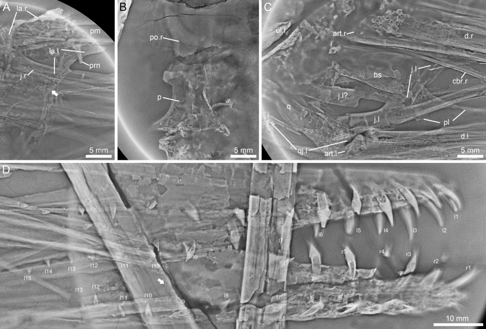 ↑ 图2.秀丽郝氏翼龙头骨CL平板扫描结构