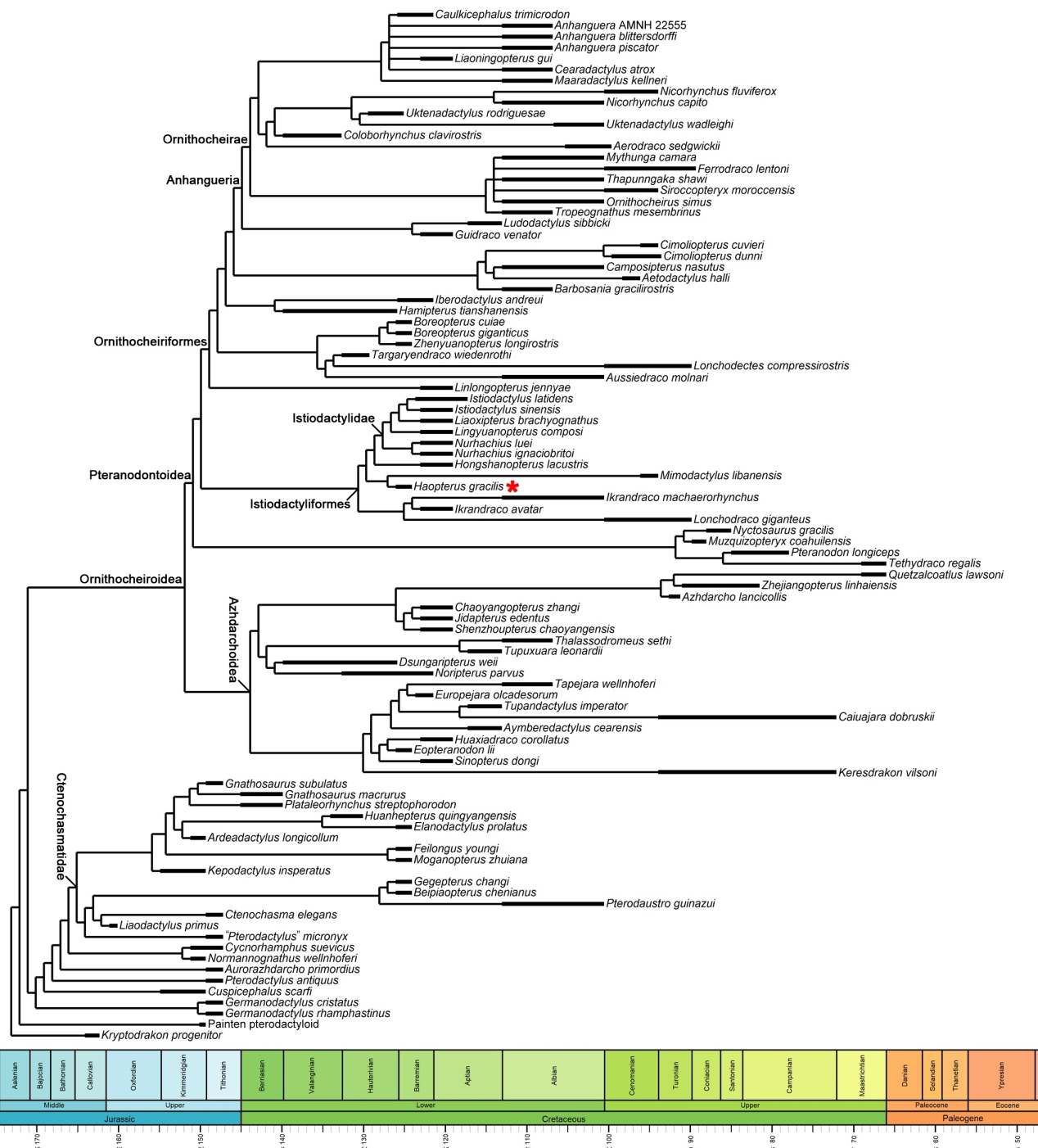 ↑ 图3.翼手龙类系统发育图,标星号为秀丽郝氏翼龙(徐亦知供图)