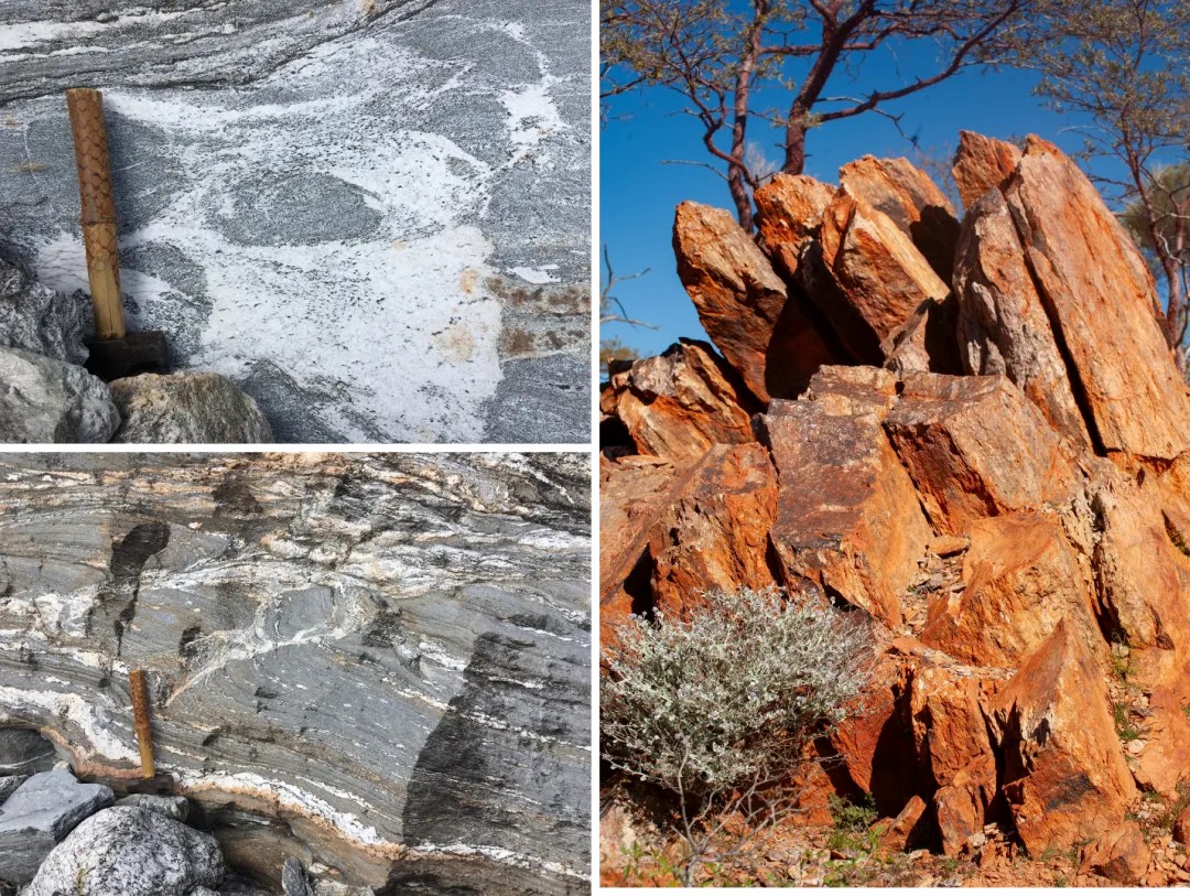 ↑ 图2 “S型”花岗岩野外照片示意图,喜马拉雅山脉(左)和西澳大利亚Jack Hills锆石发现地(右)