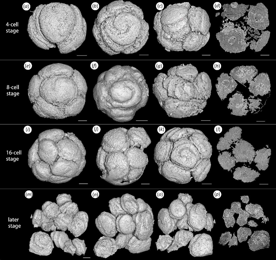↑ 不同发育阶段的旋胞类胚胎状化石