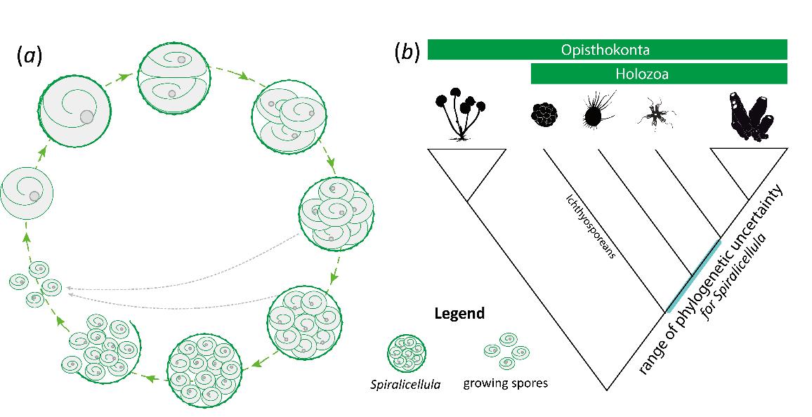 近日,中国科学院南京地质古生物研究所地球-生命系统早期演化团队研究员殷宗军领衔的国际合作小组厘定了埃迪卡拉纪瓮安生物群中旋胞类疑难胚胎状化石的亲缘关系,认为它们隶属动物总界,但不是后生动物的胚胎,而是具有多细胞发育阶段且与后生动物亲缘关系较近的单细胞生物。该成果近期在英国皇家学会旗舰期刊《皇家学会会刊B辑》(Proceedings of the Royal Society B)上在线发表。