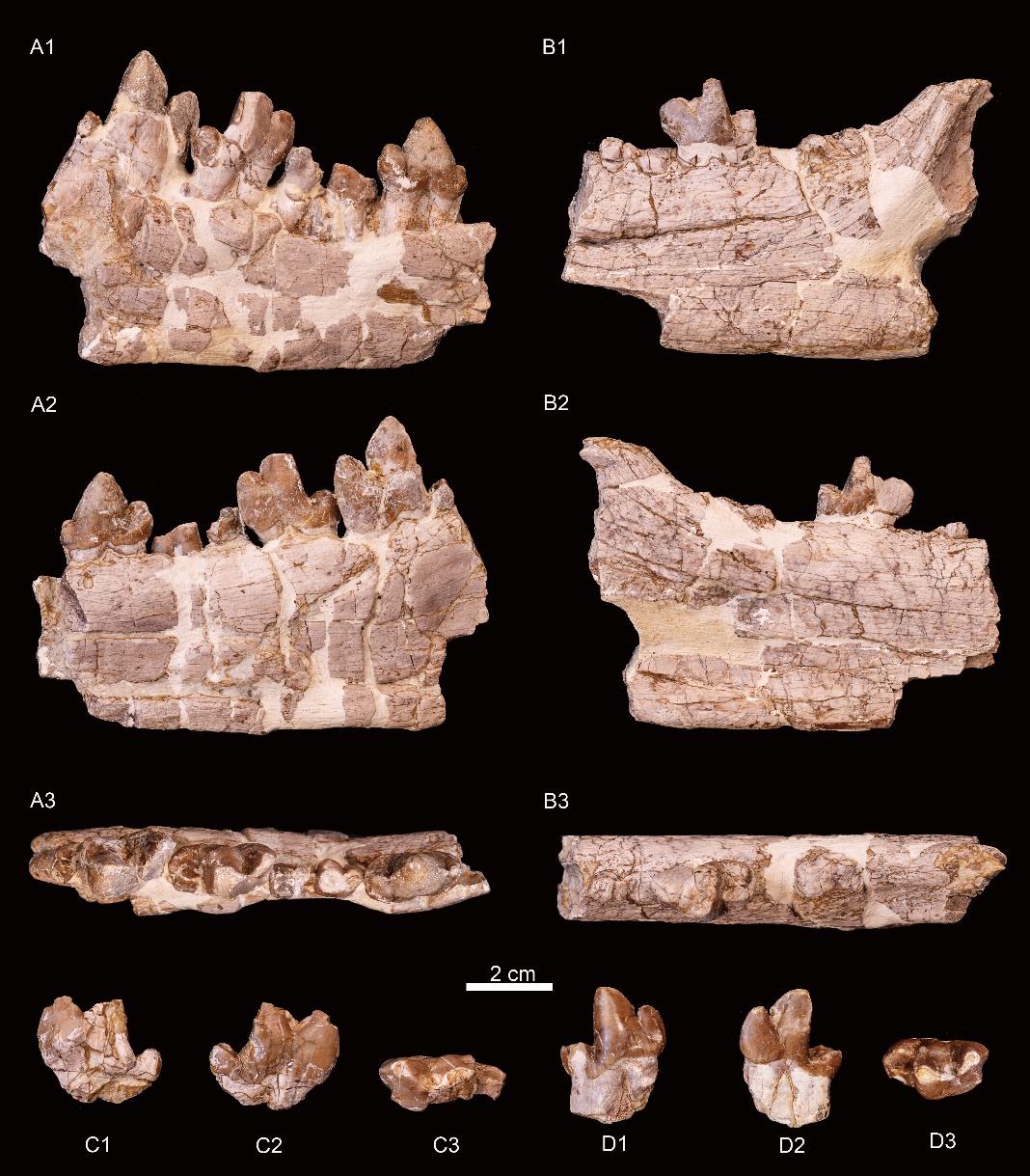 ↑ 渑池东方翼齿兽下颌骨及颊齿材料