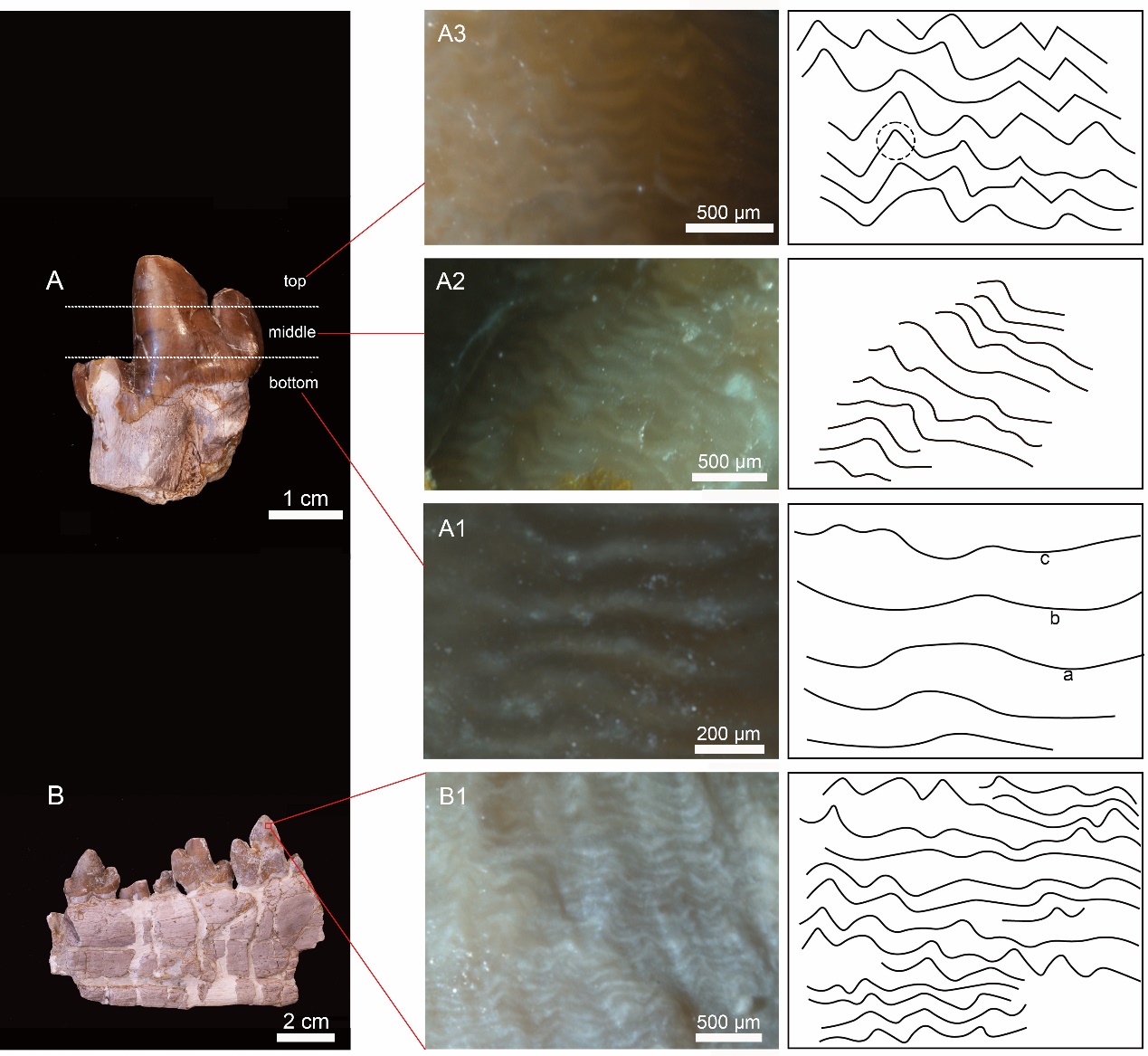 ↑ 渑池东方翼齿兽下臼齿釉质结构分析