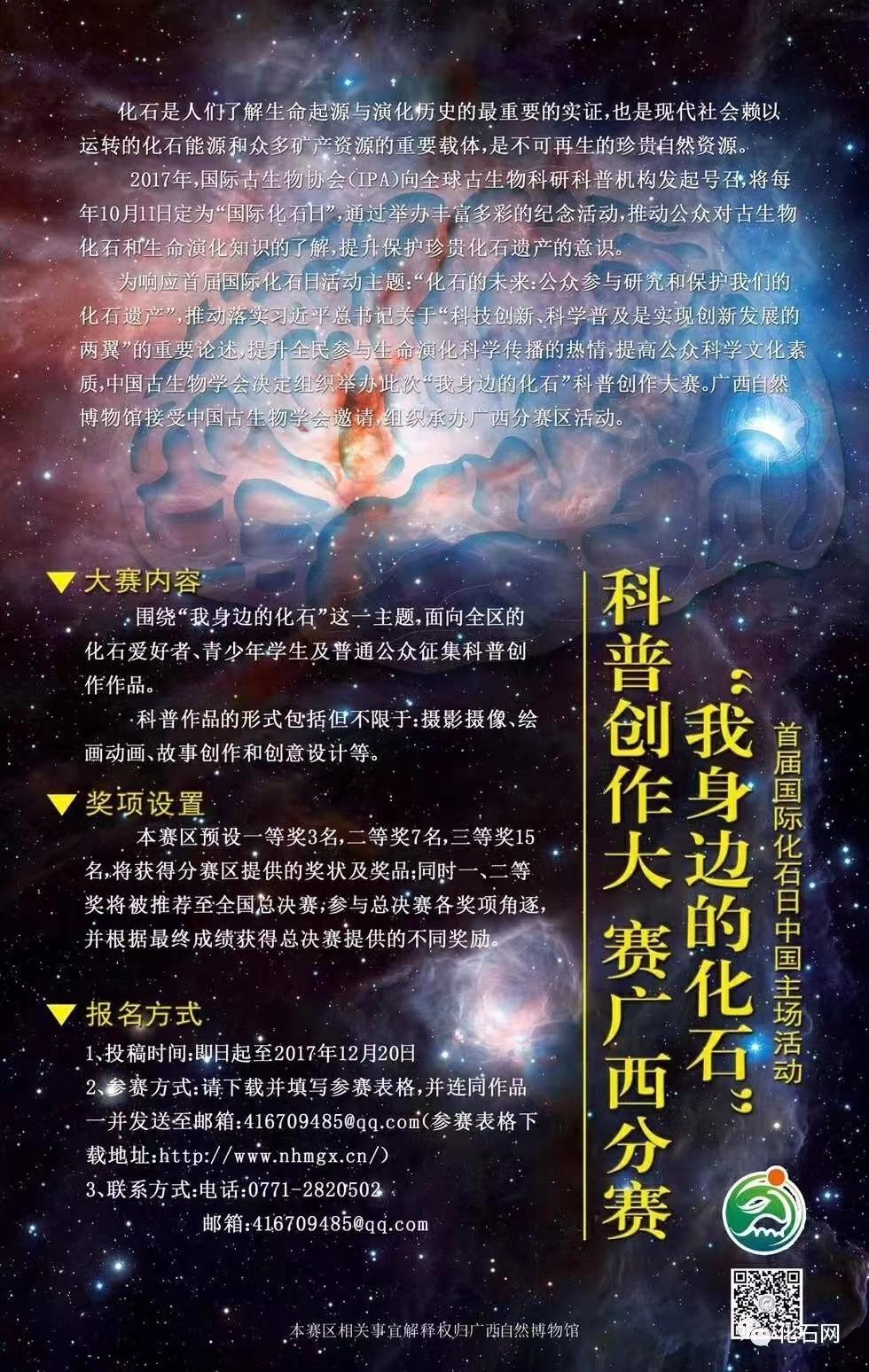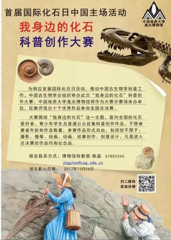 第二届“我身边的化石”科普创作大赛分赛区作品征集海报