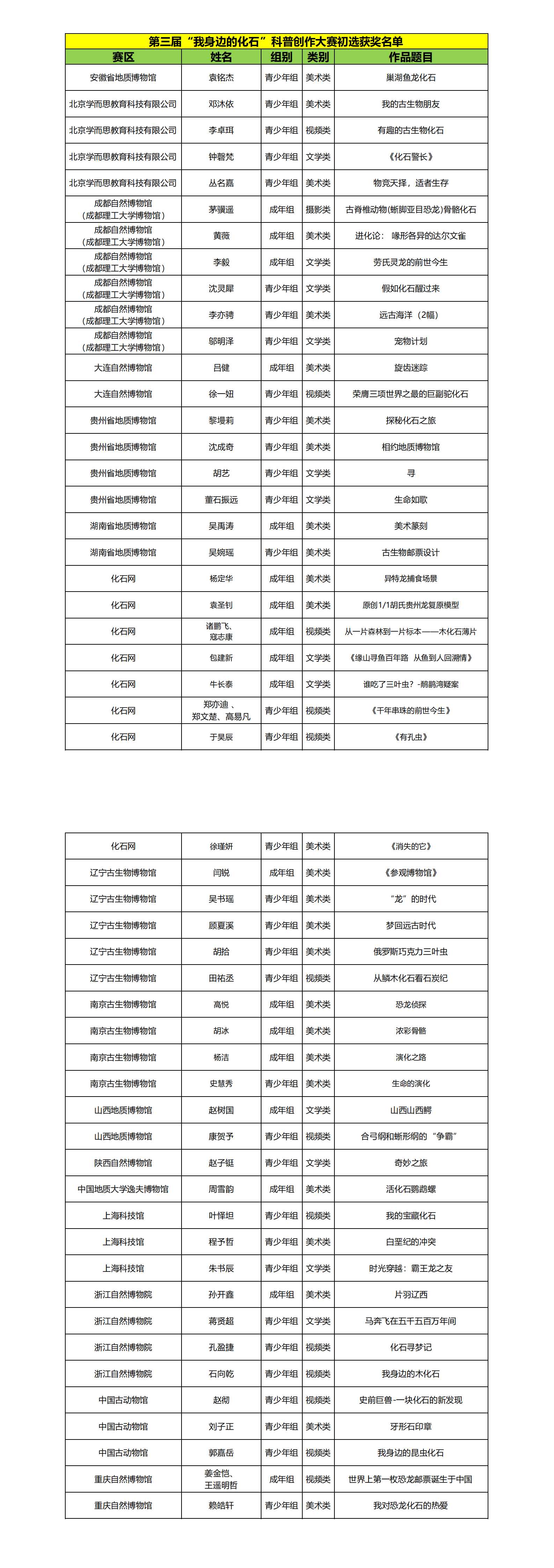 经过四个多月的层层选拔,第三届“我身边的化石”科普创作大赛全国总决赛评审(初选)结果终于揭晓。