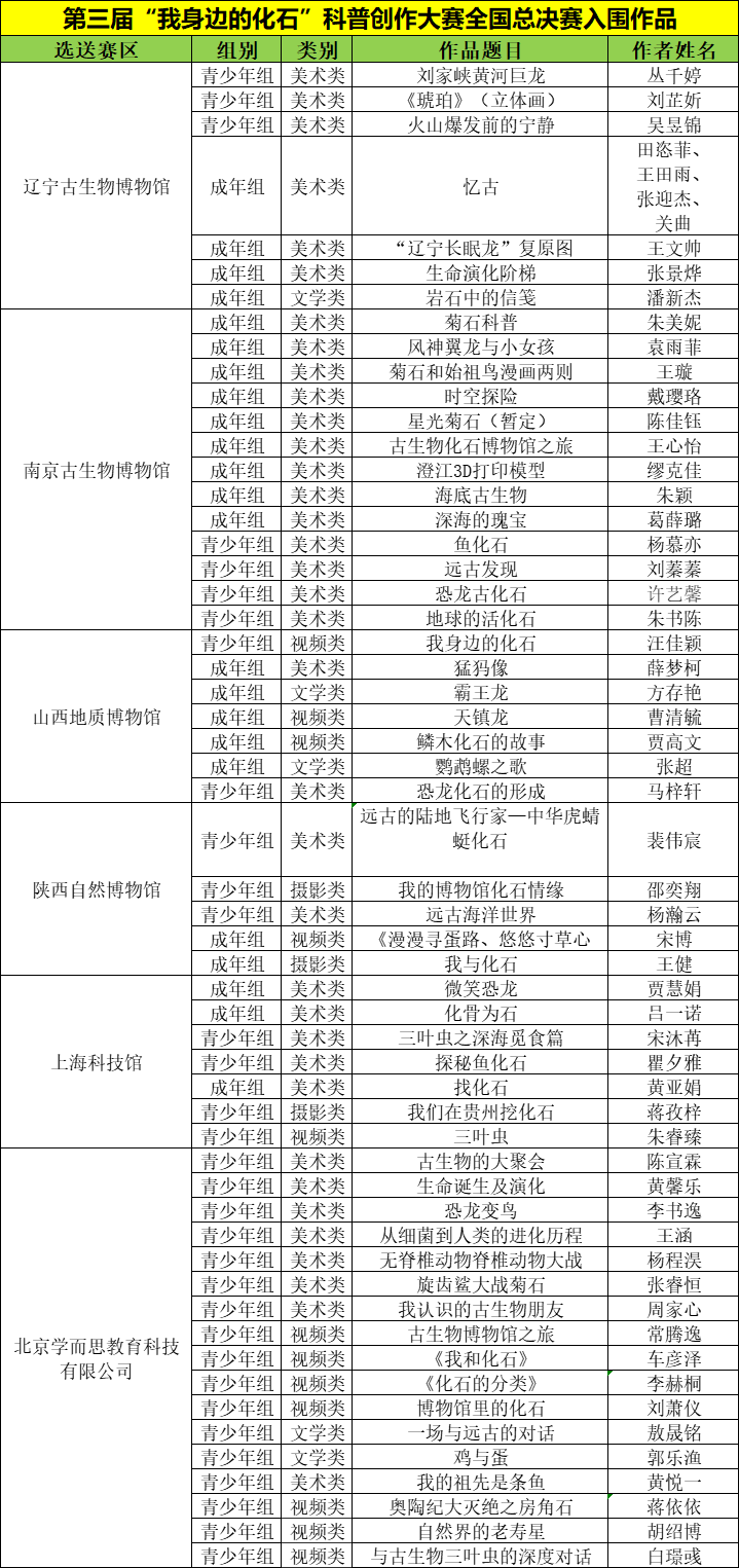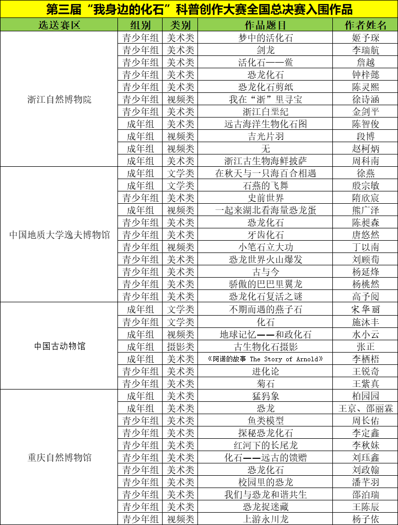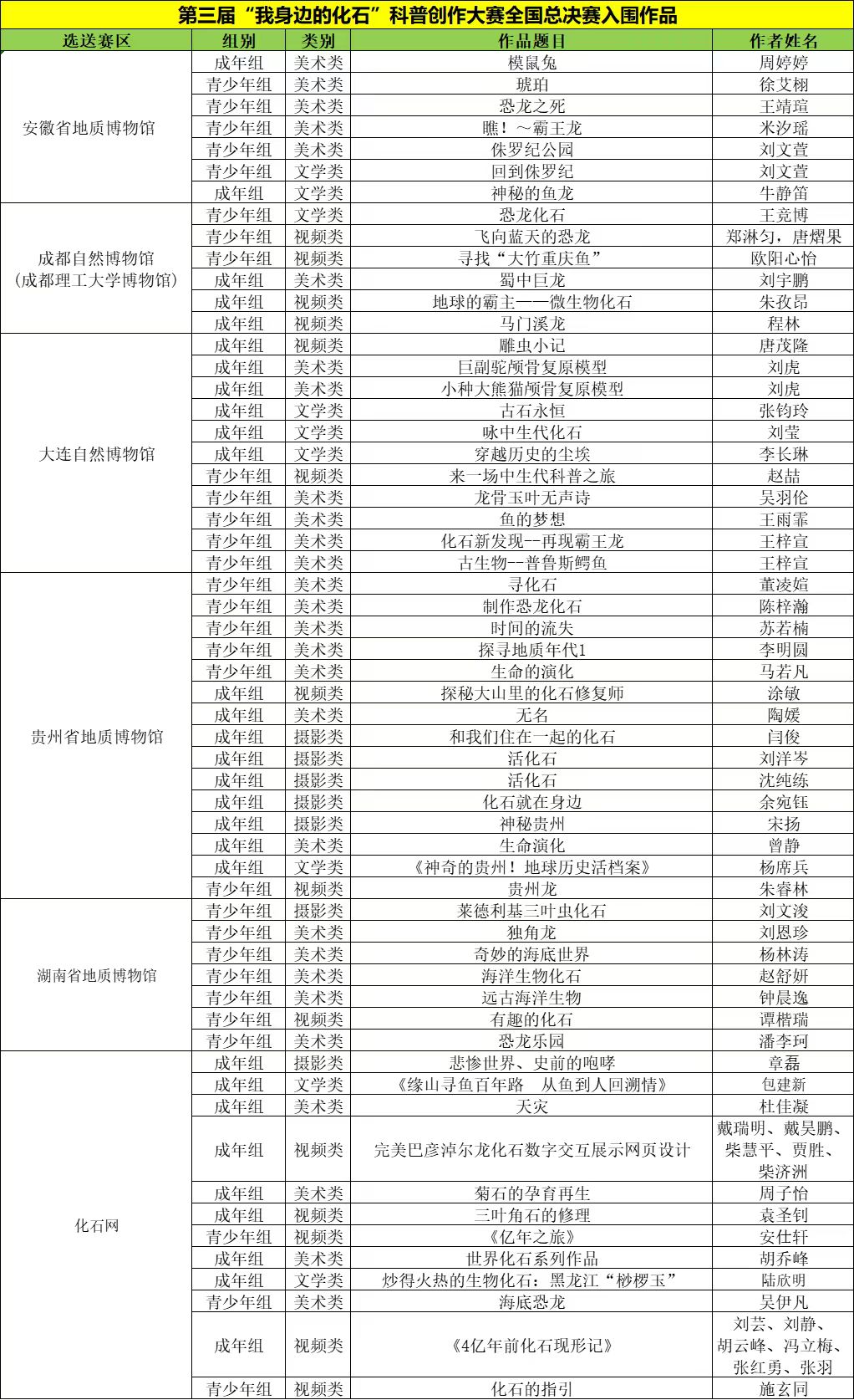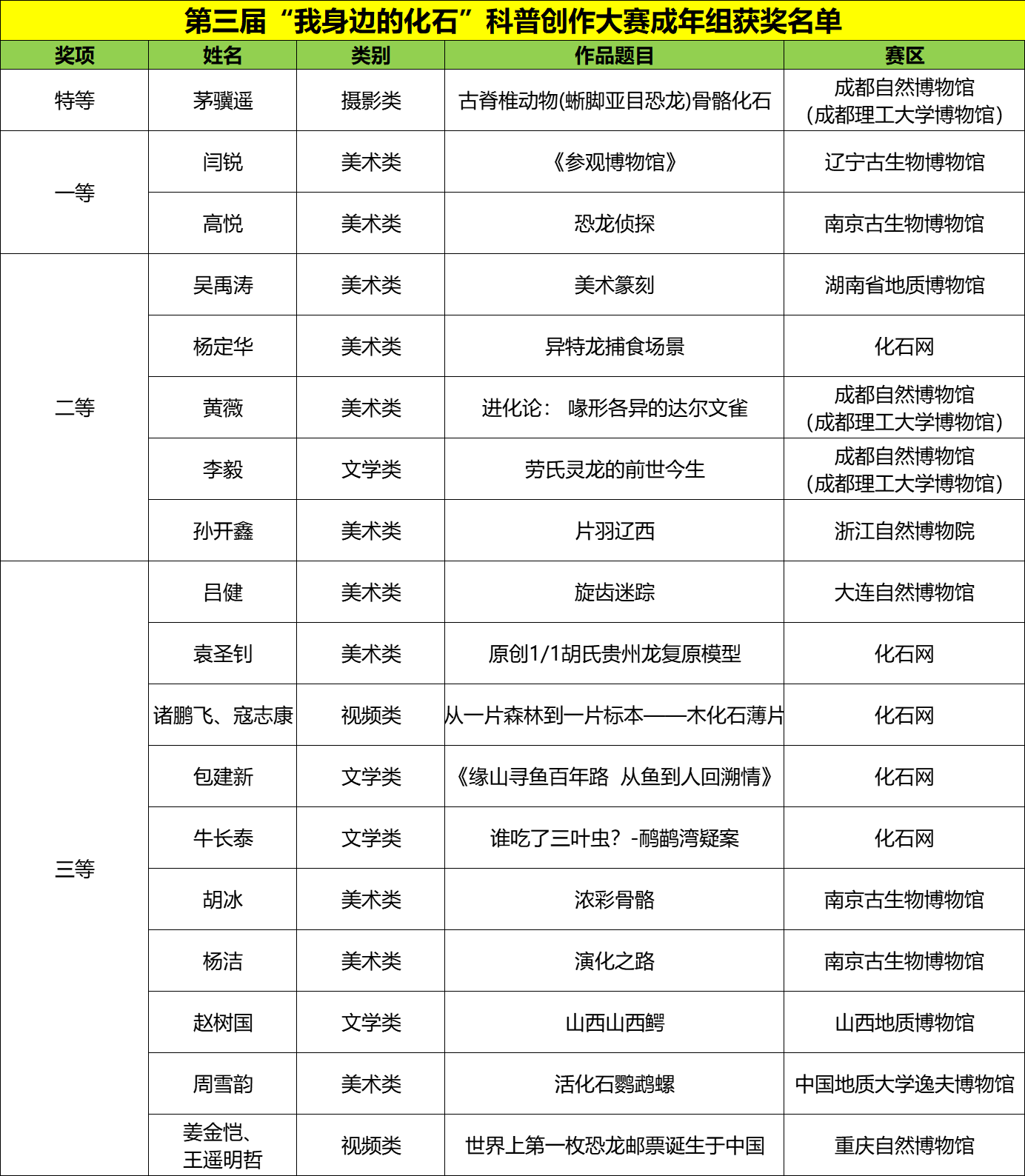 第三届“我身边的化石”科普创作大赛获奖&入围名单公布