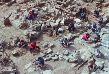 ↑ 自贡大山铺恐龙化石发掘现场(资料图片)