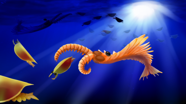 沉积物碎屑在海水中悬浮着,这是前几天海底泥石流留下的痕迹。阳光透过海面射入水中,凭借着悬浮物形成一道道光柱,其中一道正好打在奥尔德里奇岛泳虫(Nesonektris aldridgei)的脸上,他是一只古虫,也是鸸鹋湾村的村长。