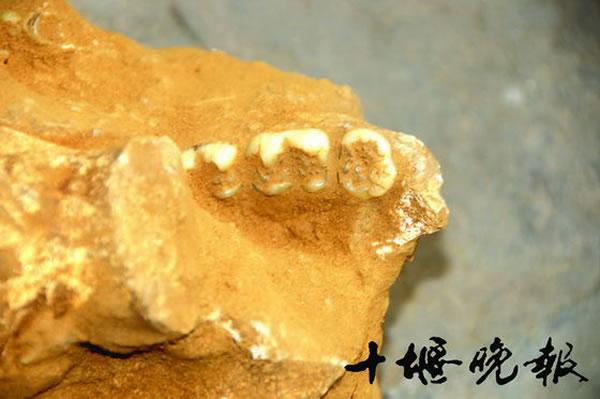 “这一排牙齿很可能是貘或者猎狗的。”郧县文物局局长周兴明通过仔细辨别后告诉记者,这些化石群包括大象、貘、水鹿、牛、马、猎狗等动物骨骼。
