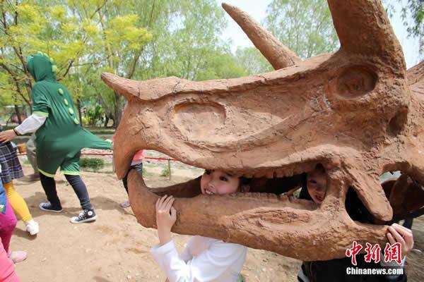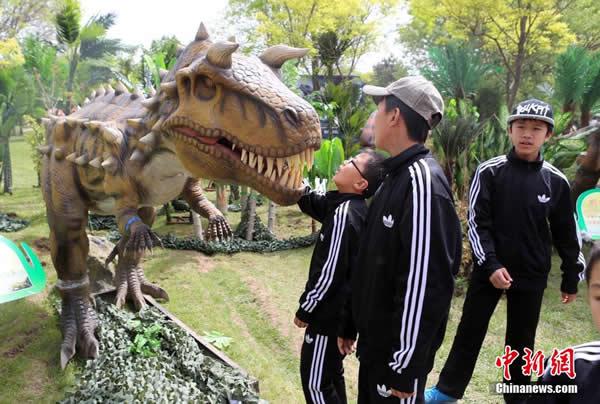 (化石网)据中新社(张云 摄):一座以恐龙为主题的学院亮相太原市动物园内。“恐龙学院”是一个以“恐龙”为主要元素的大型互动游艺项目和科普教育相结合的主题活动,集学习、科普、动手、游艺于一体。学院中,霸王龙、脊背龙、甲龙、鸭嘴龙等60多种各个时期的恐龙有机排布其中。恐龙学院展出的恐龙全部采用高科技手段制作而成,“学员”不仅可以在“老师”的指引讲解下游览观赏、了解恐龙知识,还可以与恐龙互动,边学边玩。