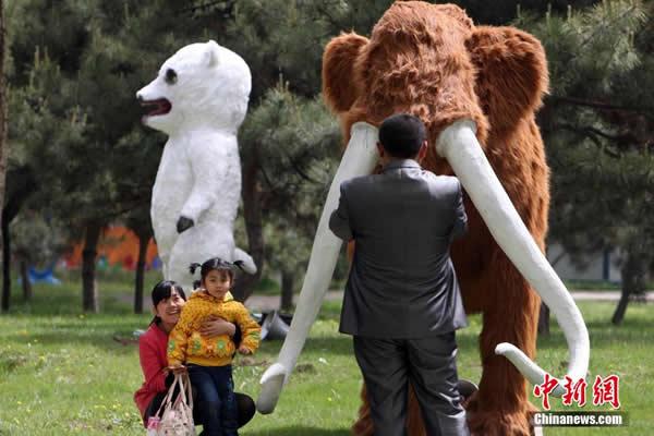 (化石网)据太原晚报(贾尚志):绿树丛荫间,一条条巨型恐龙或隐或现,发出阵阵低吼……昨日,在动物园百鸟园北侧的一片绿地中,陈列有脊背龙、甲龙、鸭嘴龙等60种仿真恐龙的“恐龙学院”正式与游客见面,成为动物园内的一道新景观。
