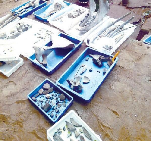 (化石网报道)据鄂尔多斯日报(赵军):近日,位于康巴什新区乌兰木伦景观湖畔的乌兰木伦古遗址发现披毛犀骨化石。目前,相关部门正在进行挖掘工作。