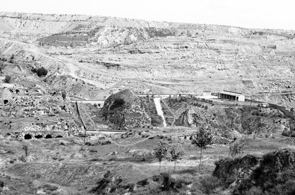 据史料记载,峙峪古遗址位于朔州城西北15公里的黑驼山脚下。8月11日,在朔州市朔城区峙峪村村民的指引下,记者从村西一路向北,来到了距峙峪村约1.5公里处的峙峪古遗址。古遗址的西侧是一个名为“聚鑫源养殖专业合作社”的养猪场,从猪场流出来的污水直接从古遗址的墙外通过。绕着古遗址的外墙往东走,在与东墙仅隔三四米处,是一煤炭露天开采区。环视四周,记者发现有许多烧瓷器的废弃瓷窑,不过现在已经无人作业。